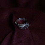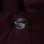 An oval signet ring carved with an open palm, signifying welcoming and blessing.
